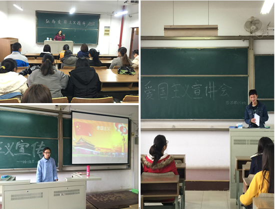 爱国主义是中华民族精神的核心,实现中华民族伟大复兴的中国梦,是当代中国爱国主义的鲜明主题。学院各团支部主要采用了班会宣讲、课堂宣传、辩论、主题讨论、座谈会、参加青马工程培训班等活动方式,让学生自觉学习习近平总书记系列重要讲话精神,引导学生爱国、爱社会主义,关心国家的前途和命运,将对祖国的热爱之情投入实践活动,努力践行社会主义核心价值观,以不断增强学生的爱国之情。丰富的活动方式,为本次主题团日活动增加了趣味性,活跃了气氛,增强了同学们对于爱国主义教育的理论自信与行动自觉。