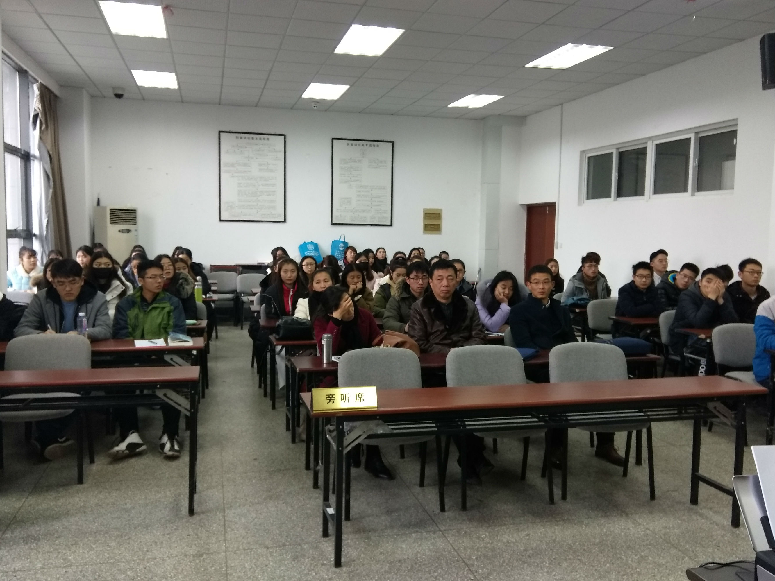 2017年12月7日下午2点,我院逸夫楼S118模拟法庭座无虚席,随着法槌敲响,六合人民法院在我院公开开庭审理了一起物业服务合同纠纷案件,2016法学全体同学观摩了庭审。