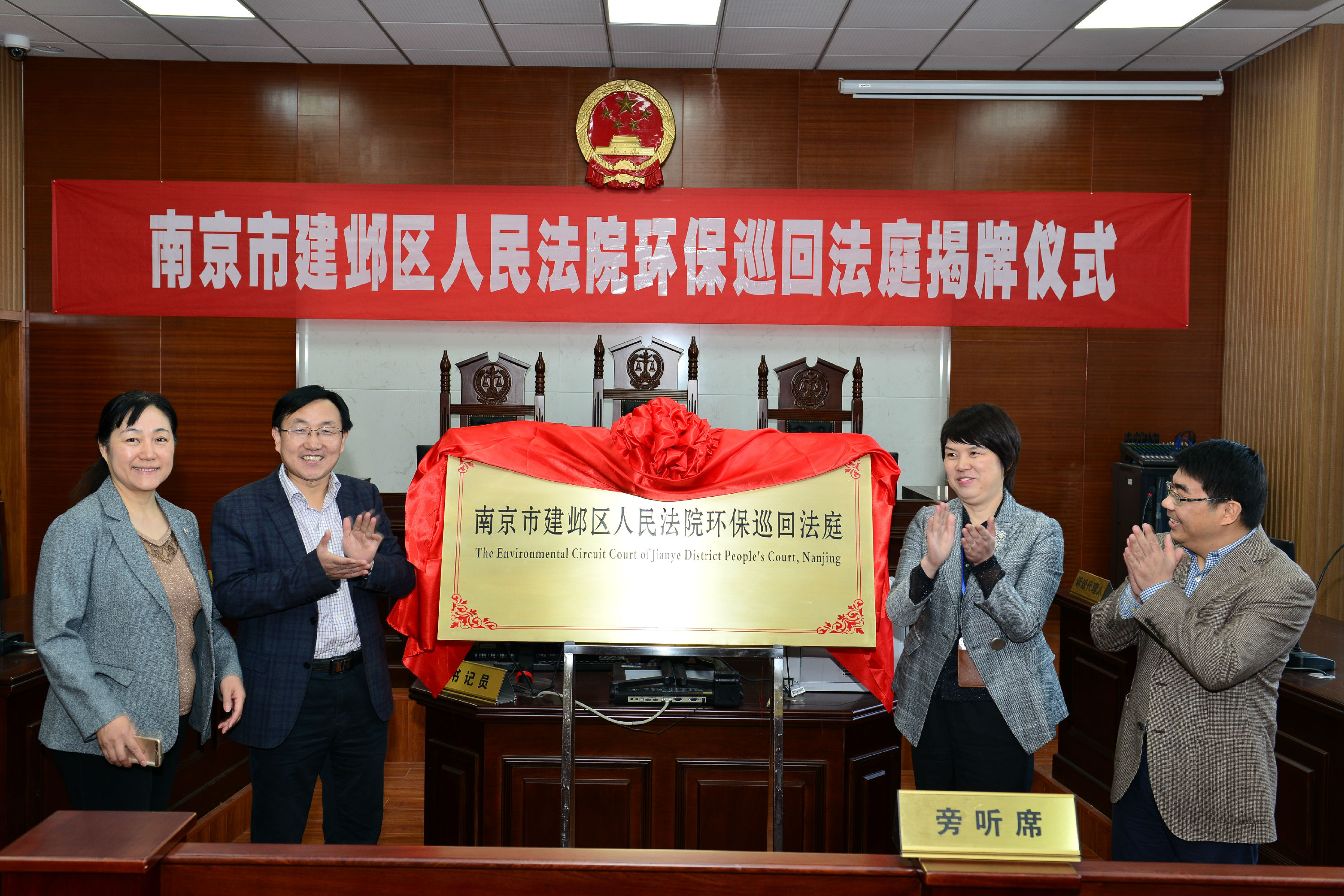 11月1日上午,南京市建邺区人民法院环保巡回法庭揭牌仪式在逸夫楼S118举行。建邺法院院长芮铭珍、副院长马梅琴、政策研究室主任王亚明参加了揭牌仪式,我校副校长闵锦忠、实验室与设备管理处处长何都良、教务处副处长陈一虹以及法政学院全体院领导出席仪式。揭牌仪式由法政学院院长陈俊主持。