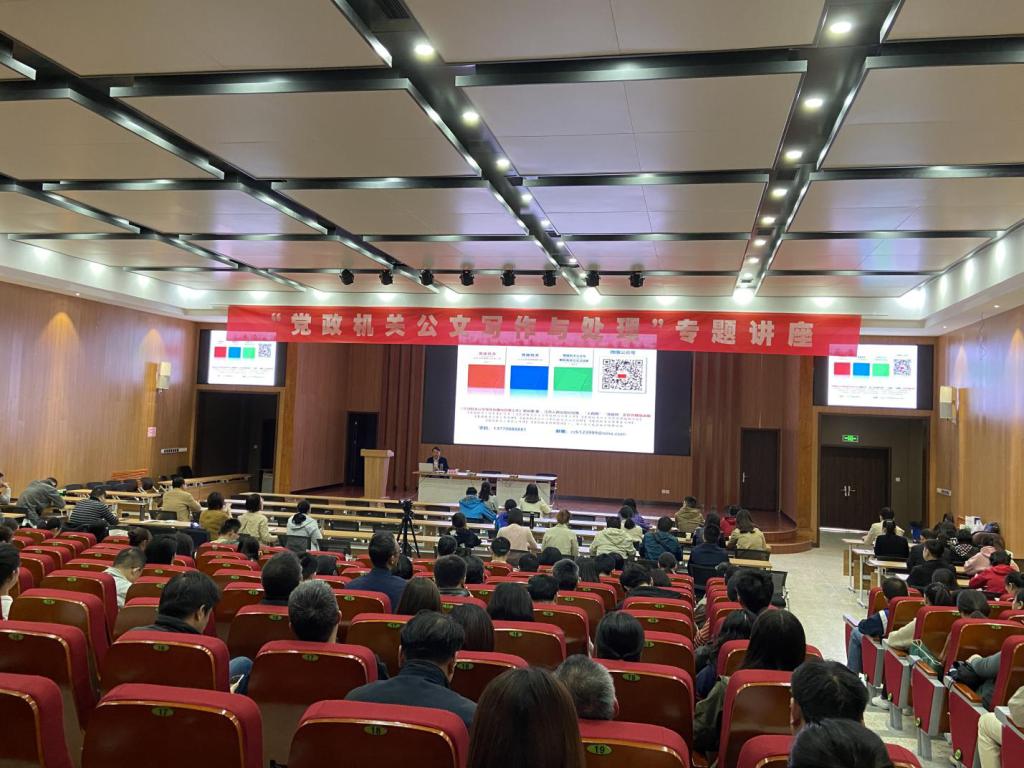 为帮助我校师生深入了解党政机关公文写作与处理的相关知识,提高科级干部的公文写作能力,推进规范化办公和提升管理效能,10月30日,党委组织部、法政学院特邀原江苏省人社厅处长、江苏省委党建研究院研究员、南京大学、南京师范大学兼职教授、国家和省特约命题专家蔡振康教授在滨江楼报告厅作“党政机关公文写作与处理”的专题讲座。党校副校长丁媛媛、全体科级干部、第一期年轻干部培训班学员和部分报考公务员考试的学生参会,讲座由法政学院党委副书记张明菊主持。