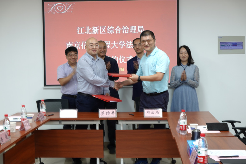 10月13日下午,法政学院与江北新区综合治理局合作共建“江北新区少年法学院”及合作制作普法作品签约仪式在阅江楼602会议室举行。我校副校长韦忠平,江北新区综合治理局副局长陈宇、司法办主任丁宇昕、科长陈超,法政学院全体院领导和部分教师代表参加了签约仪式。签约仪式由法政学院院长陈俊主持。