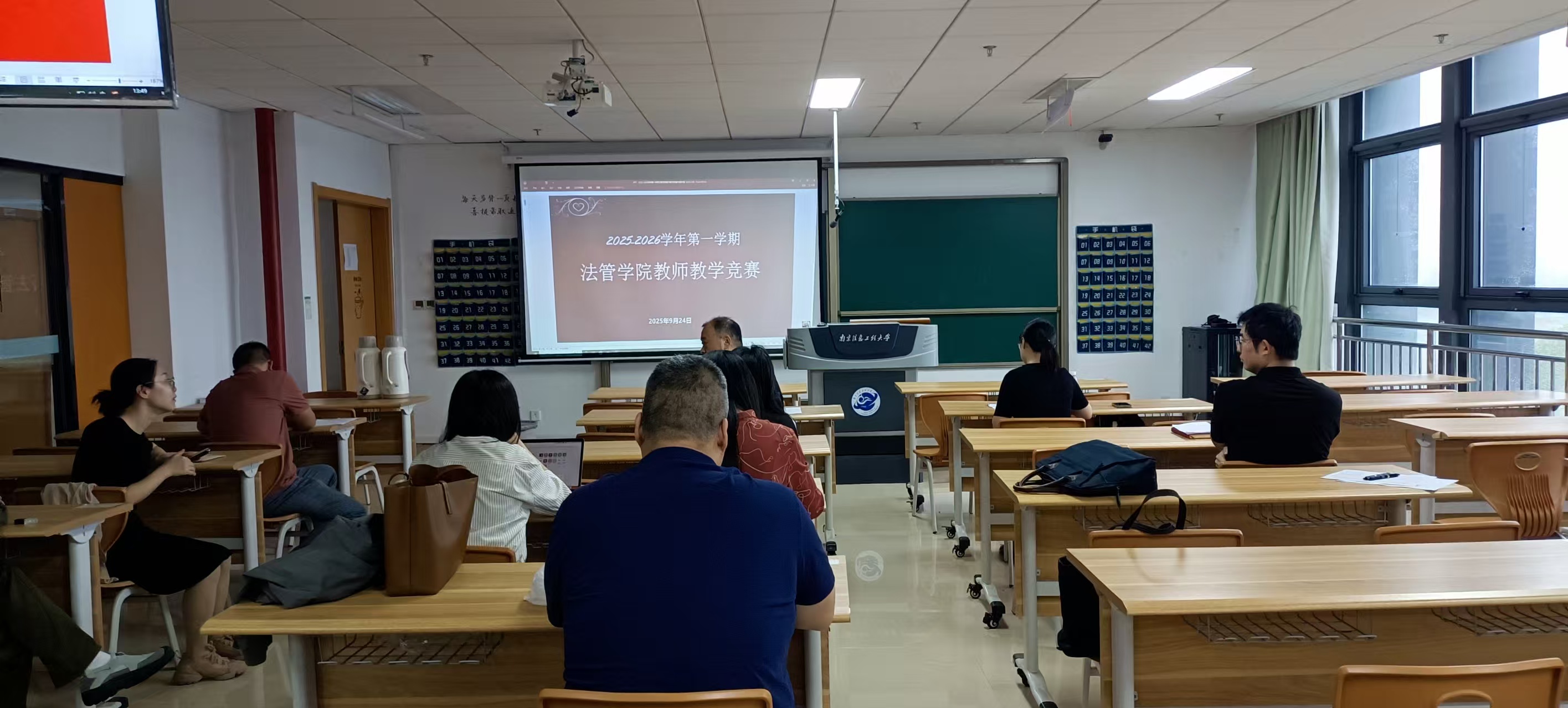 为推荐学校“第六届南京信息工程大学教师教学创新竞赛”活动参赛教师人选,学院于2025年9月24日13:45 ~ 15:50在阅江楼639举办院级教师教学竞赛。高等教育研究所所长吴立保教授、法学与公共管理学院副院长曾明教授、应急管理学院副院长顾湘副教授担任评委,公管系张金穗、陈巧、张鑫武老师,法律系陈雨、闫夏秋、吴隽雅、王爽老师,共7位老师参与比赛。7位教师相继登上讲台进行说课,他们个个精神饱满、准备充分、全情投入,思路清晰,都表现出了过硬的专业素养和临场应变能力,3位评委一一对参加本次比赛的选手进行了点评。评委们都对参赛教师的授课水平和教学能力给予了较高的评价,同时也对个别不足提出了中肯的改进意见和建议。最后经过3位评委的讨论,决定出一、二、三等奖获得者,一等奖:陈雨、闫夏秋;二等奖:吴隽雅、张金穗;三等奖:王爽、陈巧、张鑫武。
