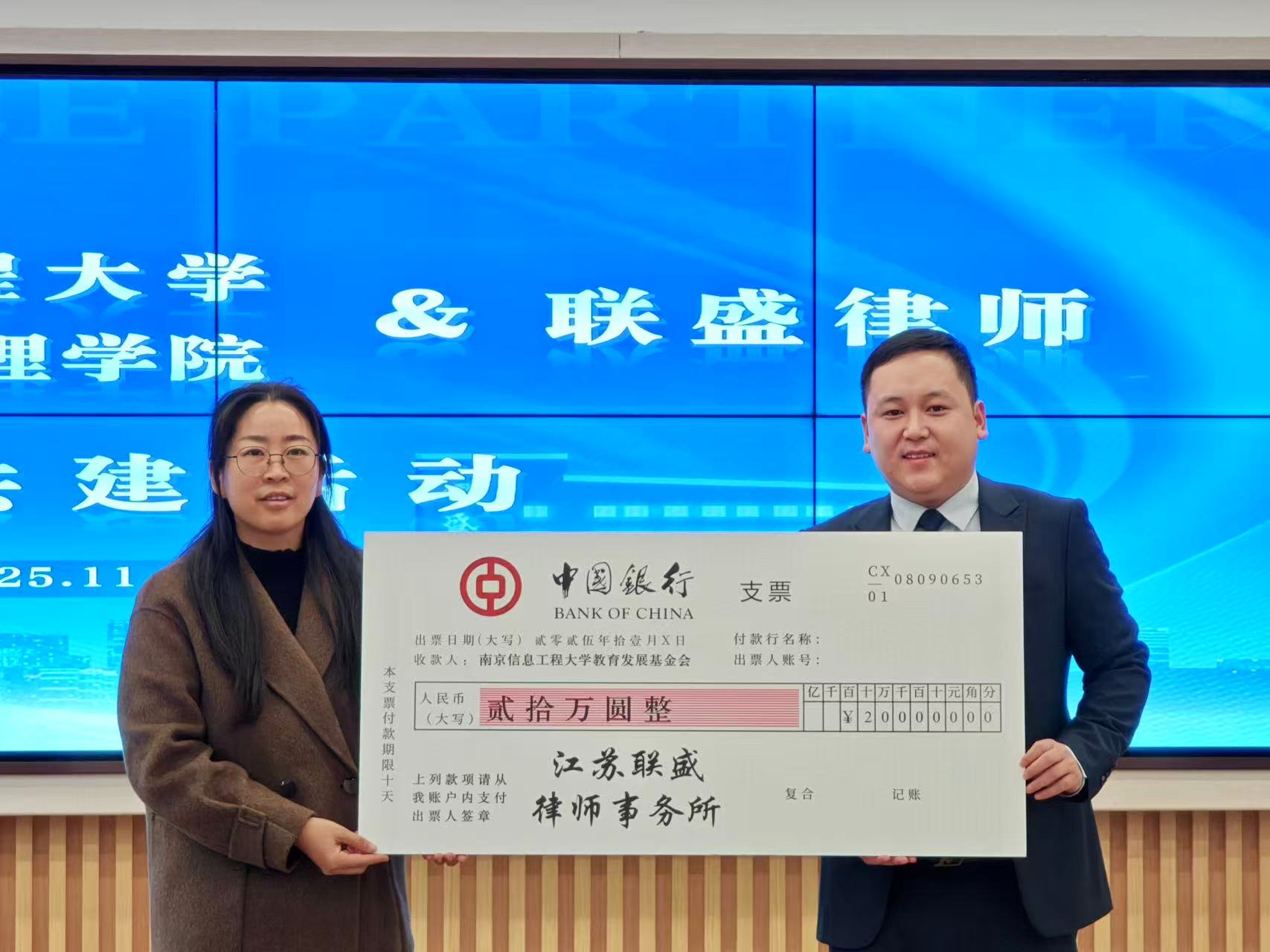 校友徐瑞文律师捐赠 20 万元设立专项基金,用于奖励学院优秀师生,徐瑞文律师表示,学院的悉心栽培是自己职业道路上的坚实根基,多年来始终对母校心怀感恩,此次设立专项基金,既是对培育之恩的回馈,也希望能为学弟学妹的成长成才略尽绵薄之力。