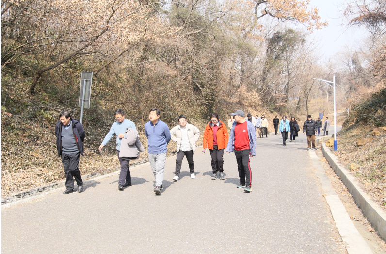 中午12时30分,参与活动的教职工在西苑南门集结,随着一声令下,大家精神饱满、喜笑颜开跨出校门,沿着山路前往龙王山景区。春光明媚,沿途中,教职工们不仅欣赏到了龙王山冬末春初的美景,还积极分享工作和生活中的趣事,增进了相互间的了解和友谊,新入职的几位老师纷纷表示感觉到了集体的温暖。