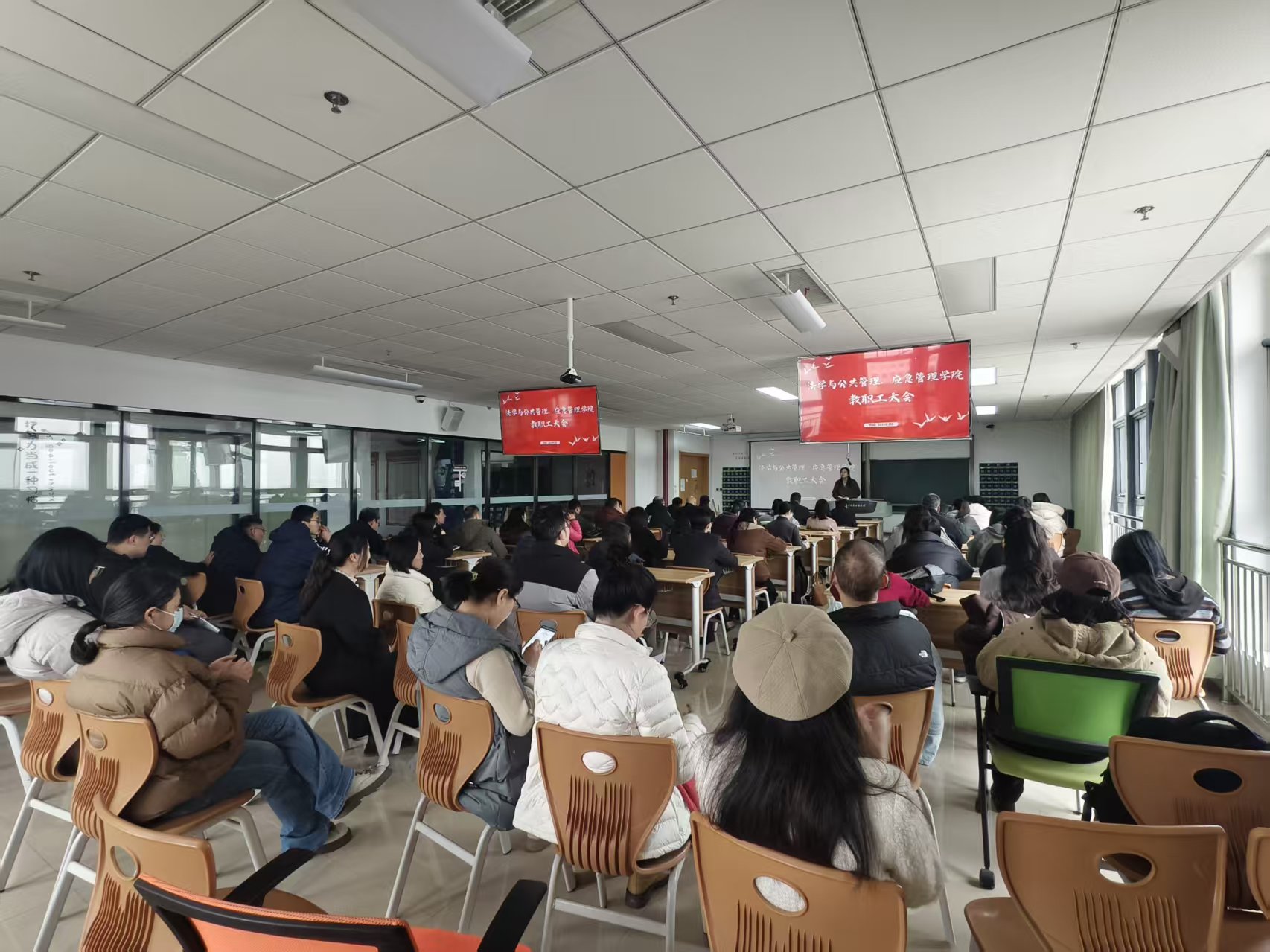 3 月 4 日下午,法学与公共管理学院、应急管理学院在阅江楼 639 召开新学期全院教职工大会,学院领导班子全体成员和全体教职工参会,会议由学院党委书记张昳丽主持。