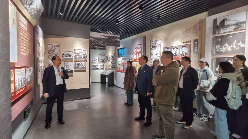 在三浦战役史料展展厅,师生们在讲解员的引导下,循着历史脉络,认真参观每一件珍贵文物、每一幅泛黄照片、每一段详实史料。大家深入了解了1949年三浦战役的历史背景、作战经过和重大意义——作为渡江战役的前奏和重要组成部分,三浦战役的胜利清除了南京外围敌人,为解放南京扫清了障碍,彰显了中国人民解放军的英勇无畏和革命担当,也让大家深刻感悟到革命先辈们“打到南京去,解放全中国”的坚定信念与牺牲精神。参观过程中,师生党员们驻足凝视、轻声交流,重温那段波澜壮阔的革命岁月。泛黄的战地书信、锈迹斑斑的武器装备、生动的场景复原,仿佛将大家带回了当年浴血奋战的战场,让每一位师生都接受了一次深刻的精神洗礼和党性锤炼。