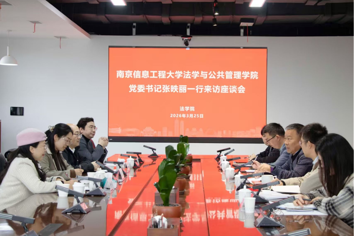 3月24日下午,学院一行到访武汉大学法学院。会议由武汉大学法学院副院长黄明涛主持。黄明涛代表学院致欢迎辞,对南京信息工程大学一行的到来表示欢迎。张昳丽详细介绍了南京信息工程大学法学与公共管理学院的发展历程、师资队伍建设、学科发展规划与办学特色,表达了深化校际互动、学习先进办学经验的合作愿景。座谈中,双方围绕学科建设、学术科研、法学特色发展、人才引育、社会服务等工作展开充分交流。